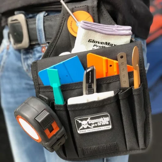 The YelloBelt ProWrap is designed with the needs of vehicle graphics installers in mind. The tool belt’s construction was designed to provide quick access to essential tools while protecting the vehicle from scratches that can be caused by exposed metal parts on ordinary tool bags.
